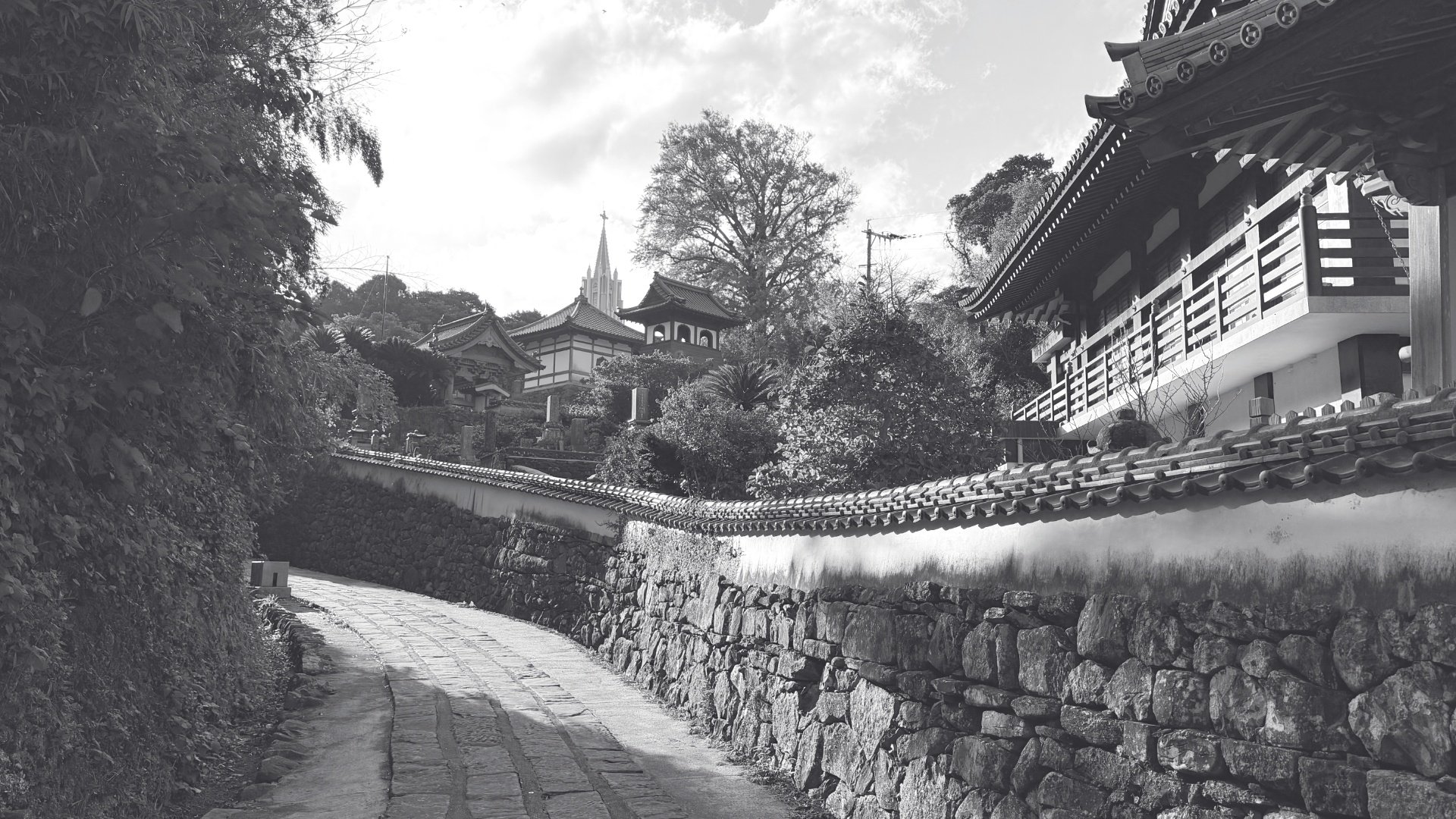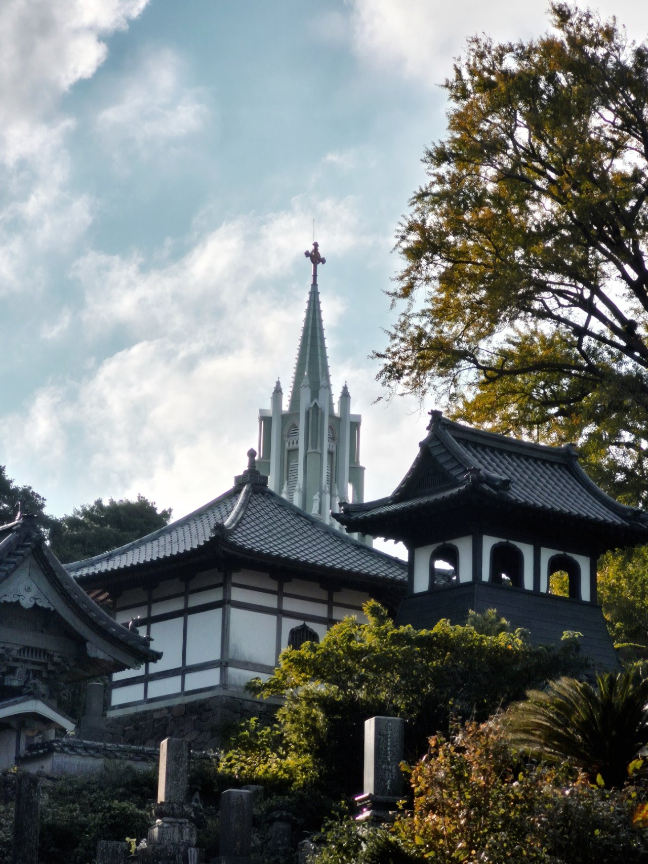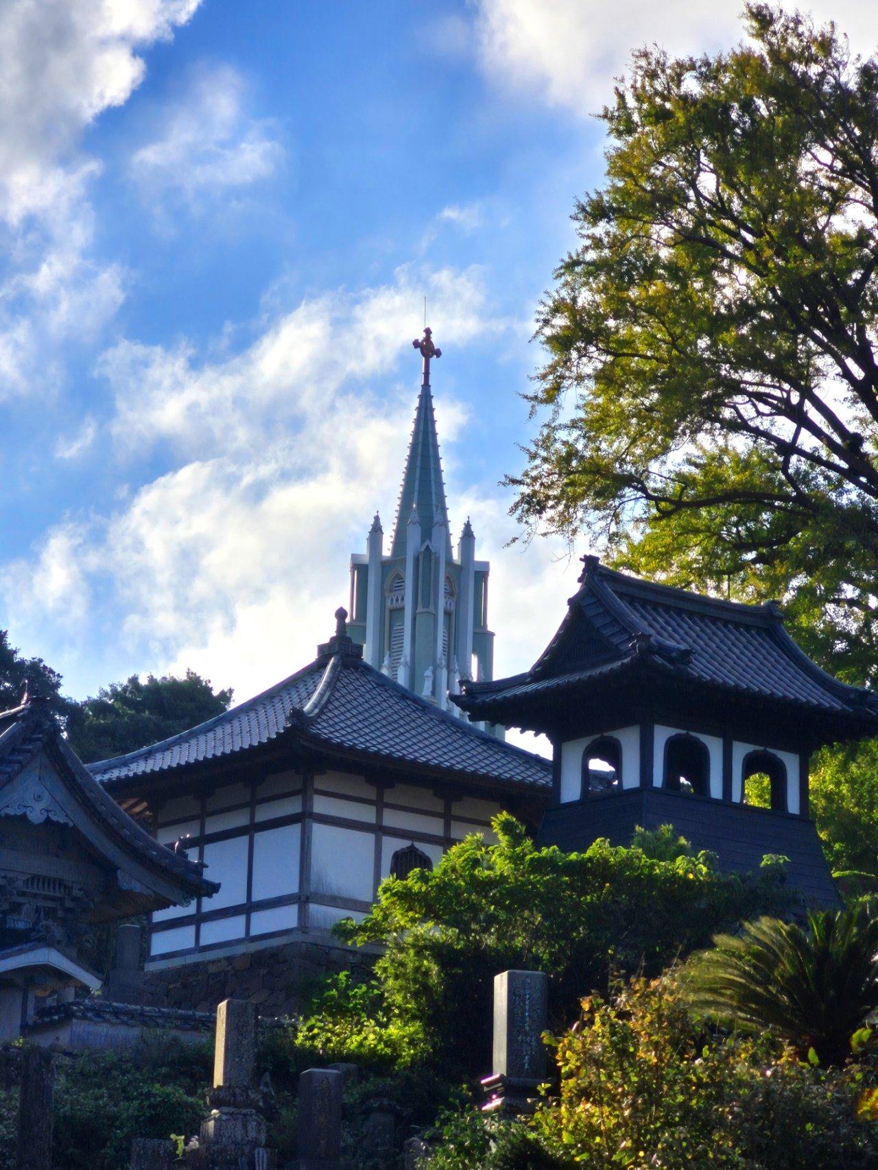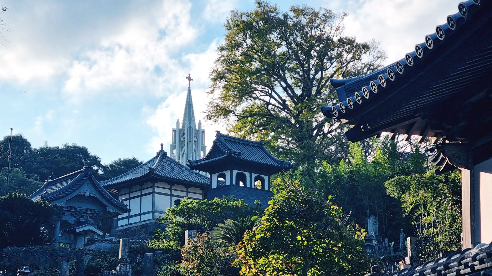 히라도의 명소, 성당과 사찰이 함께 보이는 풍경