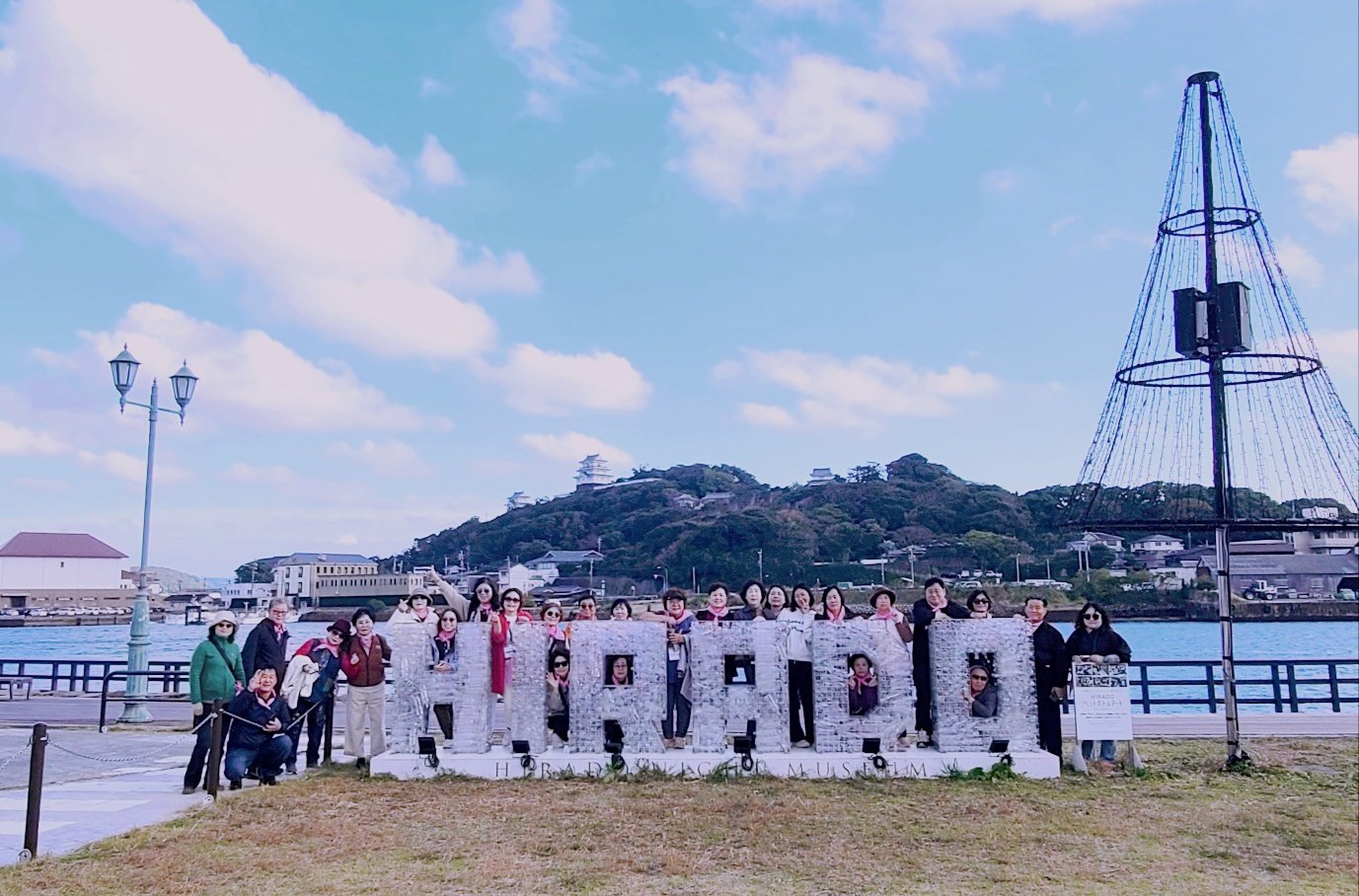 바닷가 광장윽 히라도라고 꾸며진 조형물에서 인증샷을 찍었다.