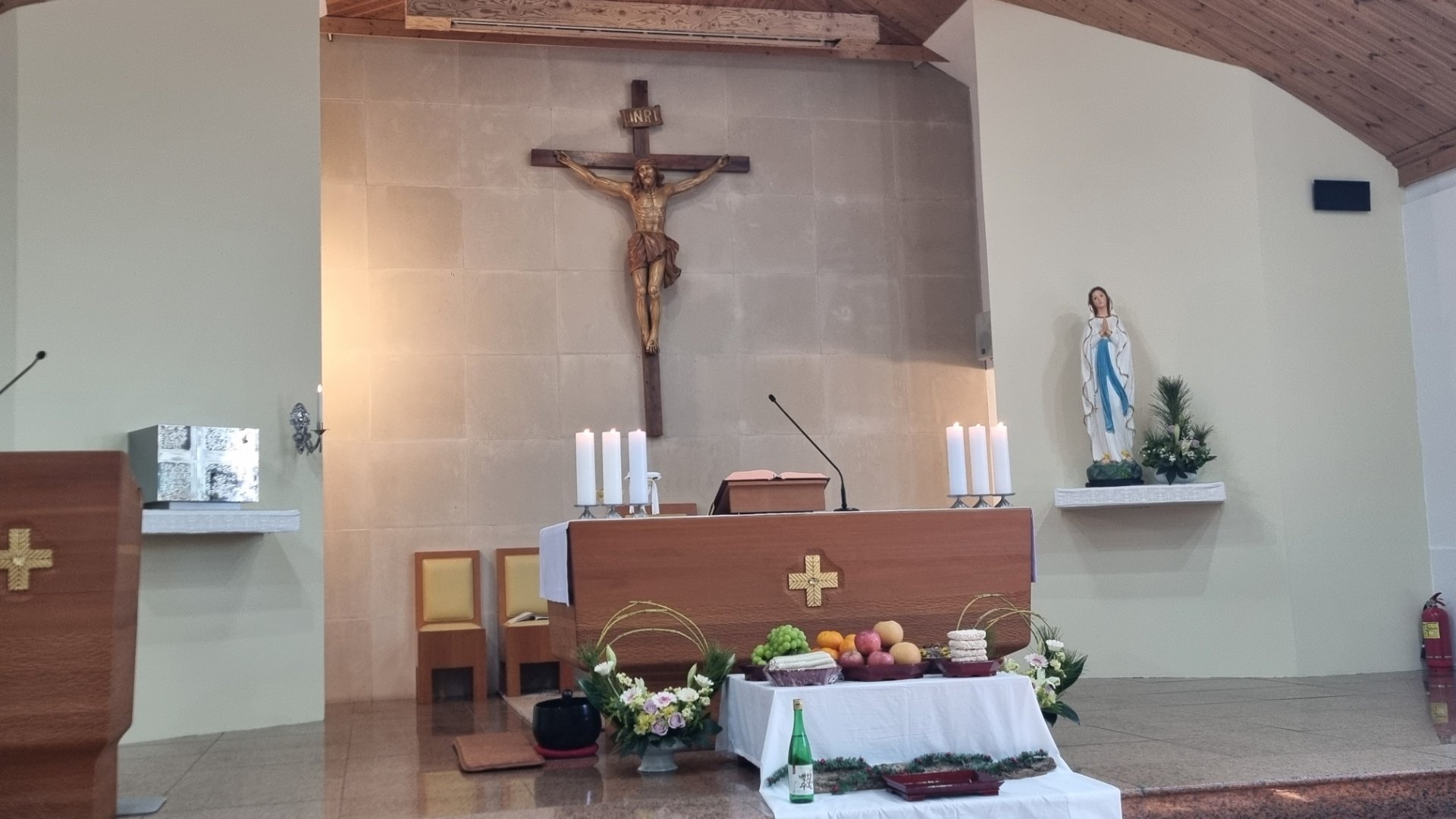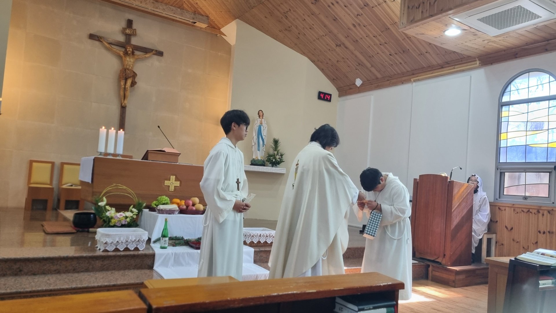 신부님께서 제대 옆으로 나오시더니