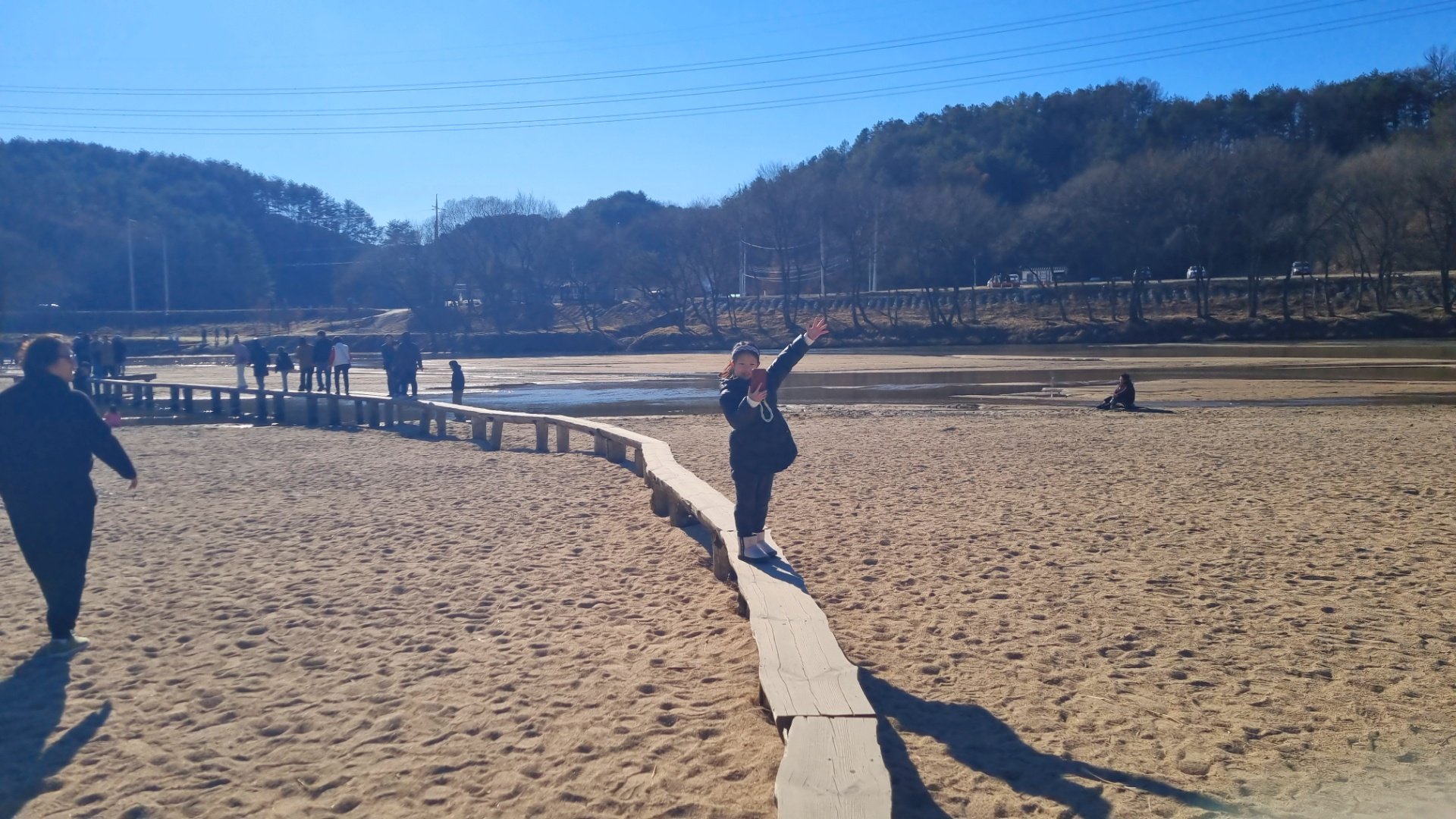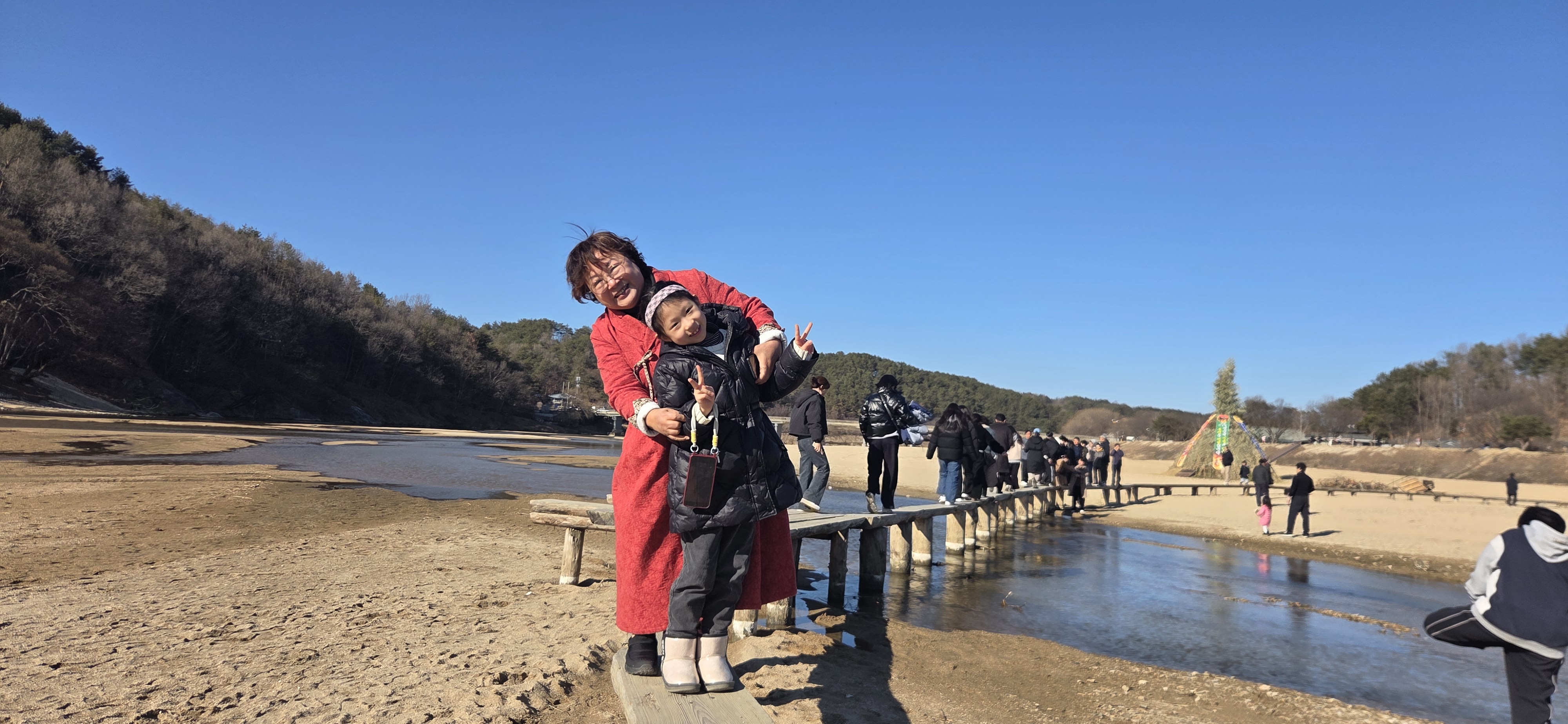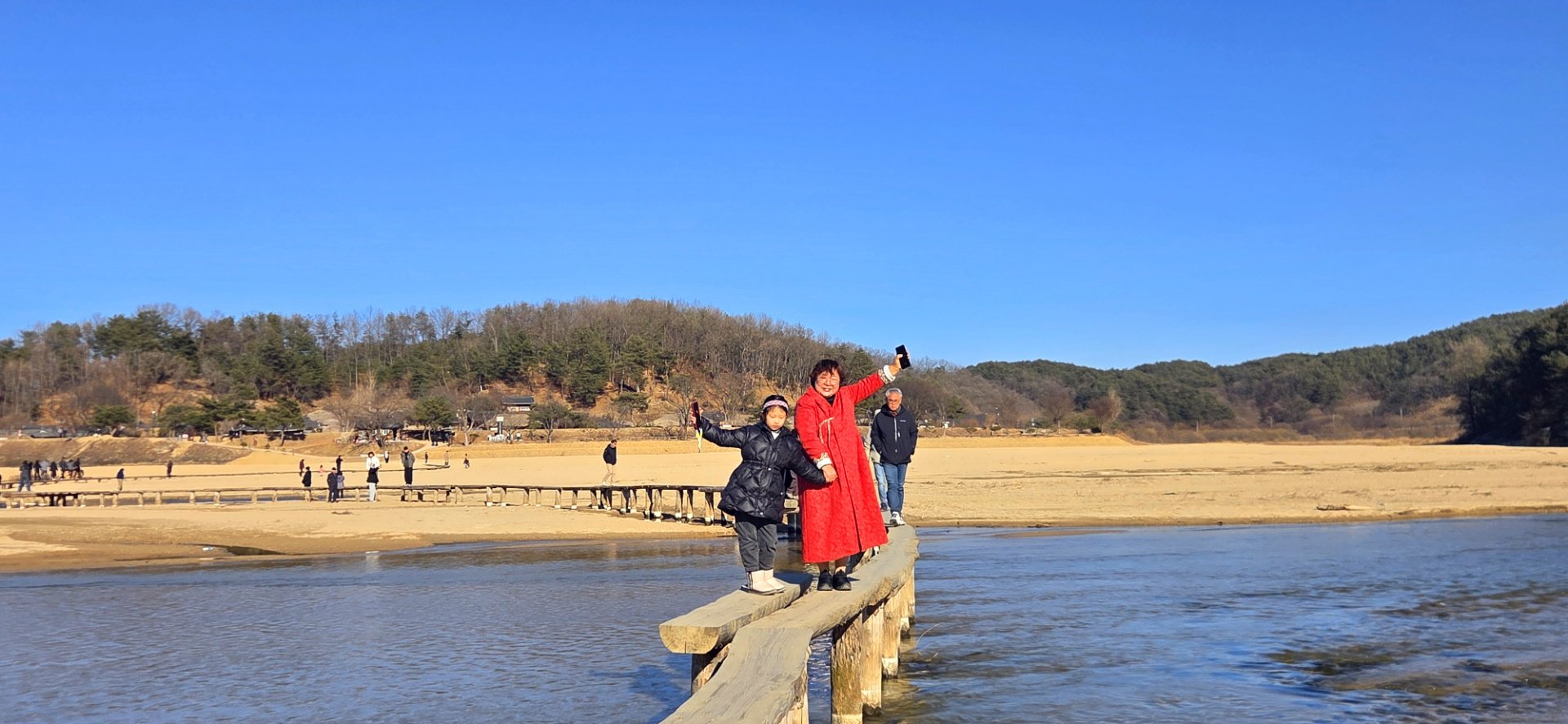 강 위로 구불구불한 나무로 된 외나무다리가 있는데 오고 가는 통행이 상당히 어렵다.