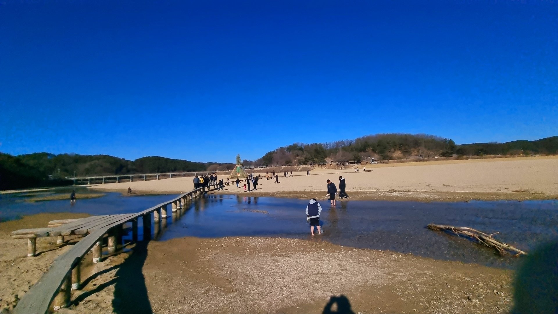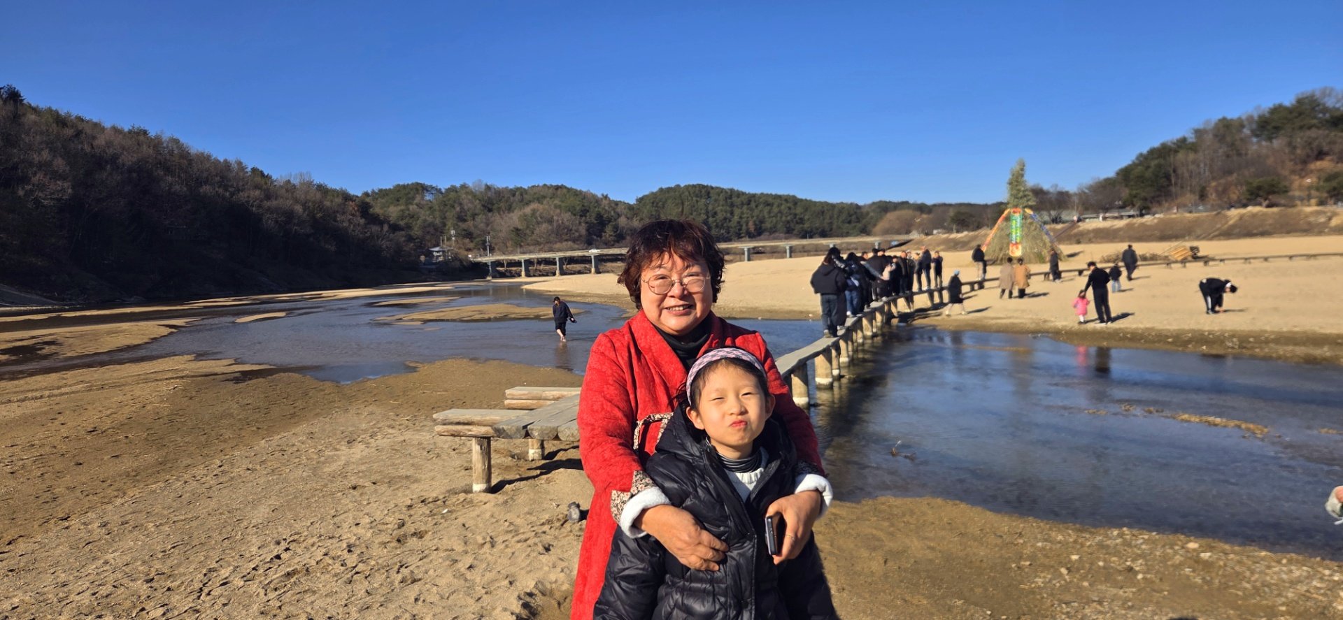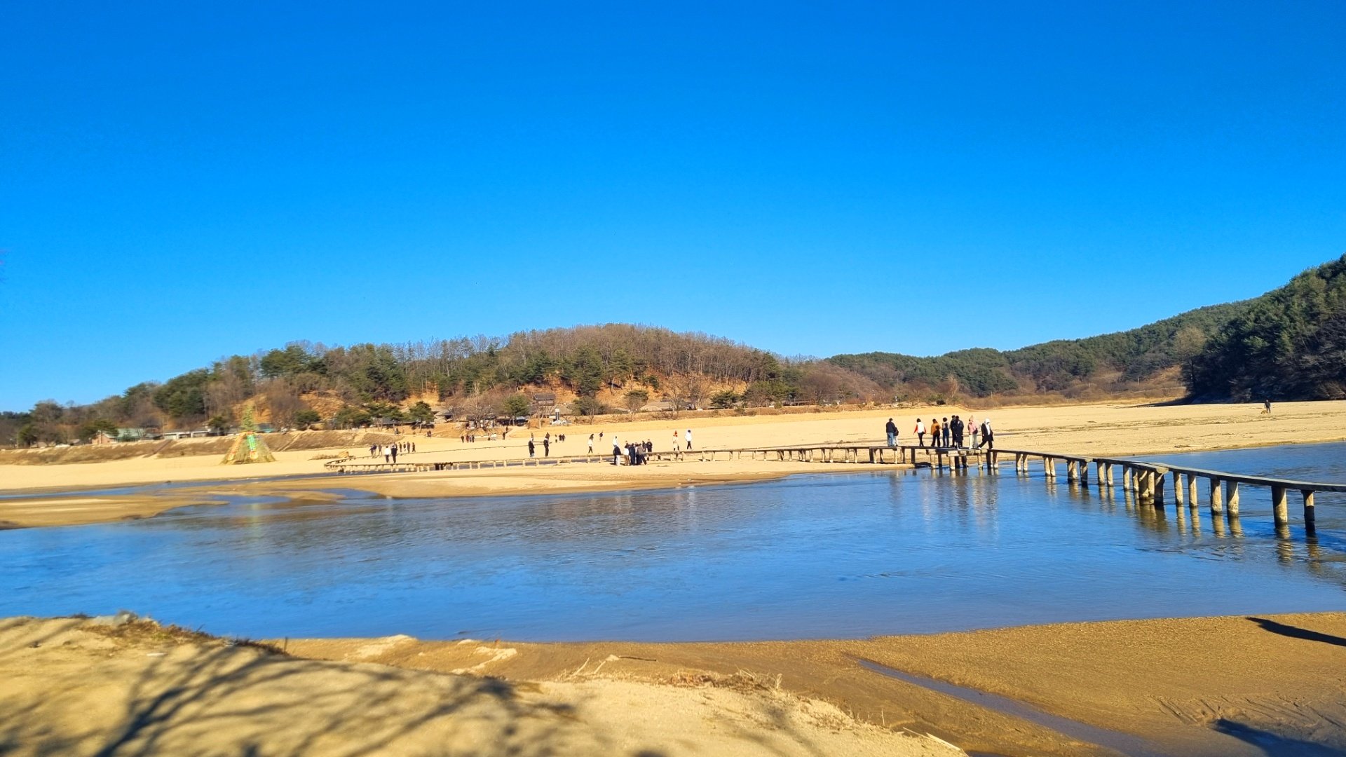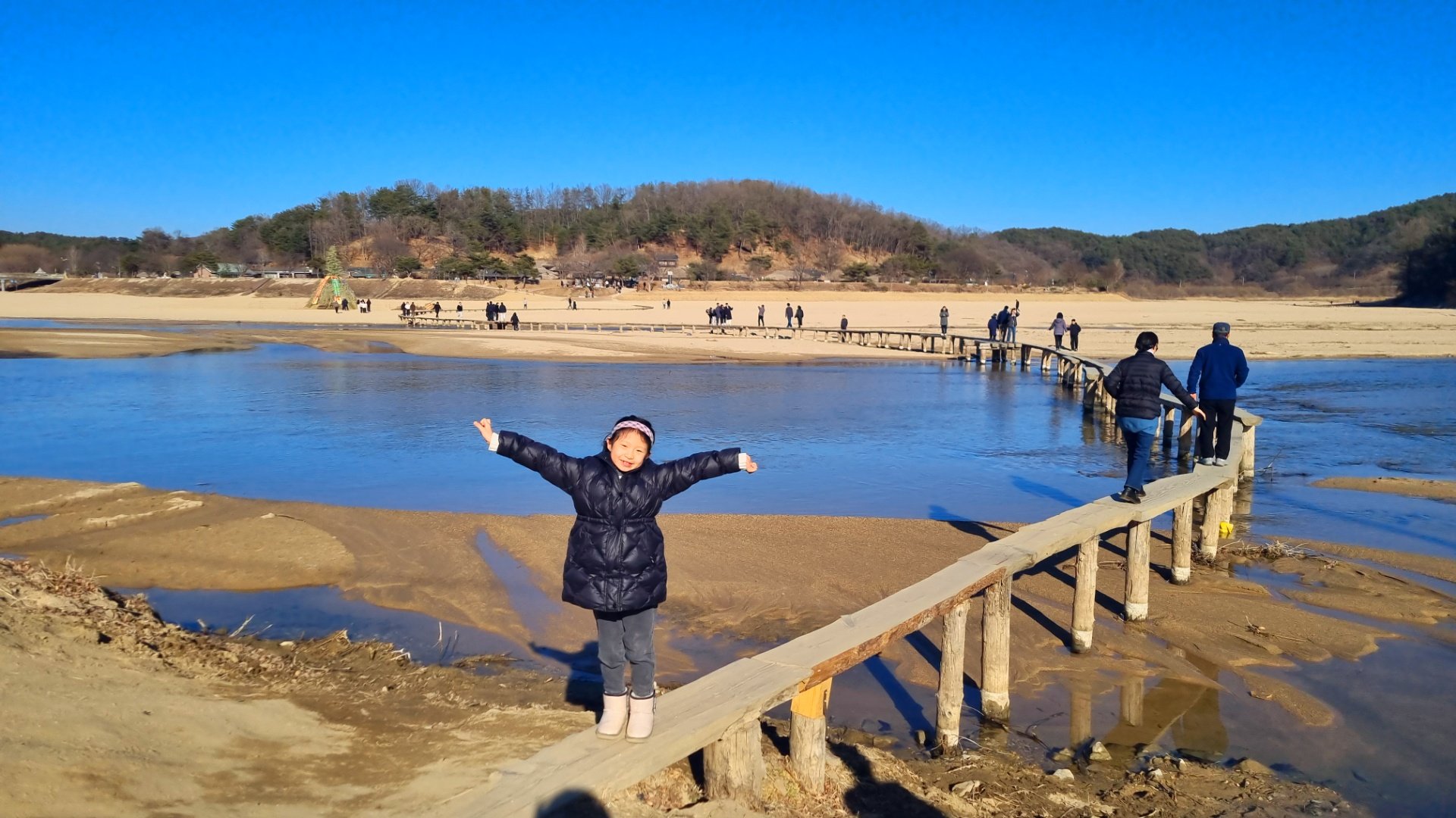 강 위로 구불구불한 나무로 된 외나무다리가 있는데 오고 가는 통행이 상당히 어렵다.